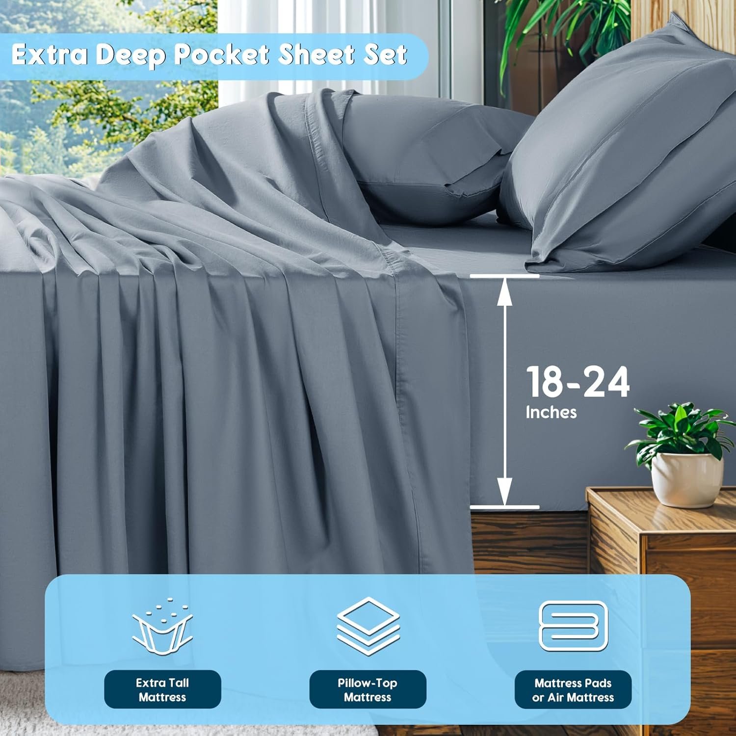 The extra deep pocket fitted sheet is specially tailored to fit modern mattresses ranging from 18 to 24 inches deep, ensuring a secure and wrinkle-free fit. The elegant French Blue shade adds a refined and timeless touch to any bedroom décor.